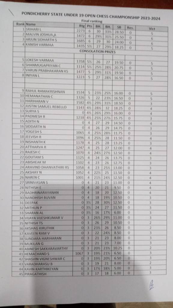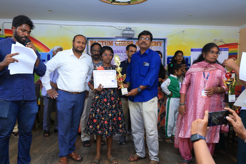 More than 120 schools have participated in this event and 50 schools have participated from Pondicherry. More than 500 players were played in this event. More than 100 kids from factum chess academy played this event.